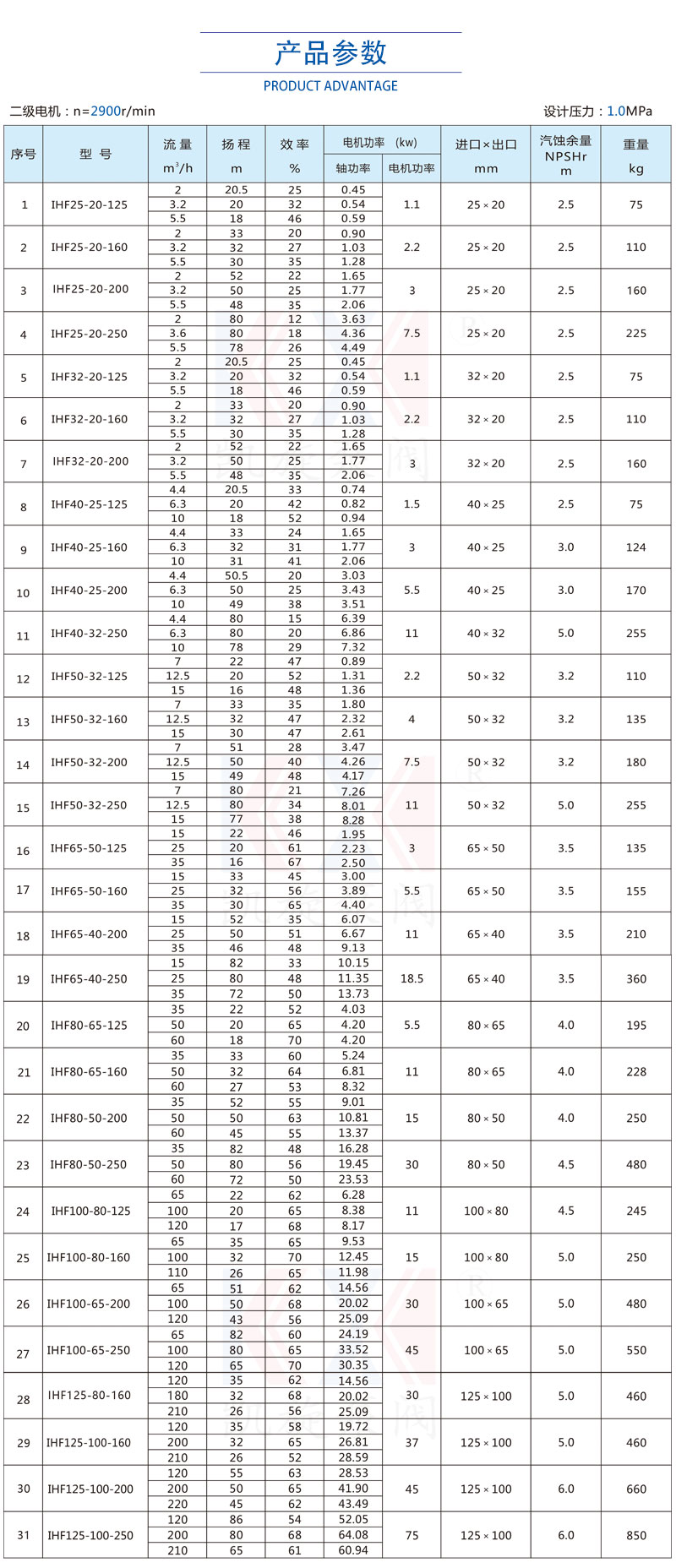 IHF磷酸泵是凱旋推出的一款能輸送任意濃度磷酸的專用泵,泵體采用金屬外殼內襯氟塑料(F46/PFA),泵蓋、葉輪均用金屬嵌件外包氟塑料(F46/PFA)整體燒結壓制而成,軸封采用外裝式波紋管機械密封,靜環選用氧化鋁陶瓷(或碳化硅),動環采用四氟填充材料,耐腐耐磨密封性好。泵的進出口均采用鑄鋼體加固,以增強了泵的耐壓性。 該泵具有耐腐、耐磨、耐高溫、不老化,機械強度高、運轉平穩、結構先進合理、密封性能可靠、拆卸檢修方便、使用壽命長等優點。適用于-20℃~120℃溫度條件下輸送任意濃度的硫酸、鹽酸、氫氟酸、硝酸、磷酸等強酸強腐蝕介質而不受損。