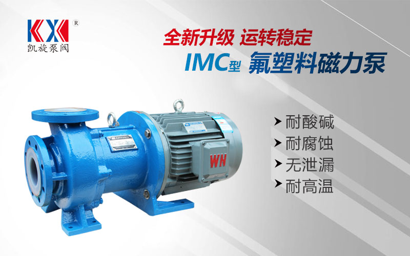 IMC型氟塑料磁力泵,過流部件使用氟塑料及合金復合材料制造,是應用磁力學原理,利用內外永磁體傳動,實現扭矩無接觸傳遞,當電動機帶動外轉子總成旋轉時,通過磁場的作用磁力線穿過隔離套帶動內轉子總成和葉輪同步旋轉,外轉子旋轉時隔離套靜止,隔離套將介質完全密封,從而達到無泄漏輸送介質的目的。解決了機械傳動泵的軸封跑、冒、滴現象。