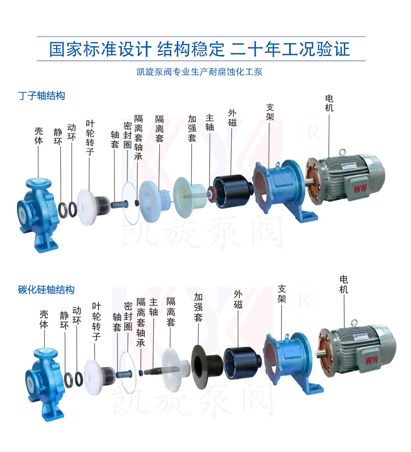 IMC磁力泵是CQB磁力泵的升級產品,采用固定軸設計,葉輪與內磁為一體式結構,整體支撐在固定軸上,相比于傳統的旋轉軸,固定軸的強度提升明顯。主軸、軸承等對磨部件采用碳化硅、無壓碳化硅制造,在運行時對磨部件之間會形成液膜,大幅提升了使用壽命。加固套采用聚醚醚酮、增強碳纖維等非金屬材料制造,杜絕了磁渦流發熱帶來的隔離套損壞。內外磁均采用稀土磁鐵,在正常操作條件下,磁性不會隨著時間的推移而產生老化退磁現象。