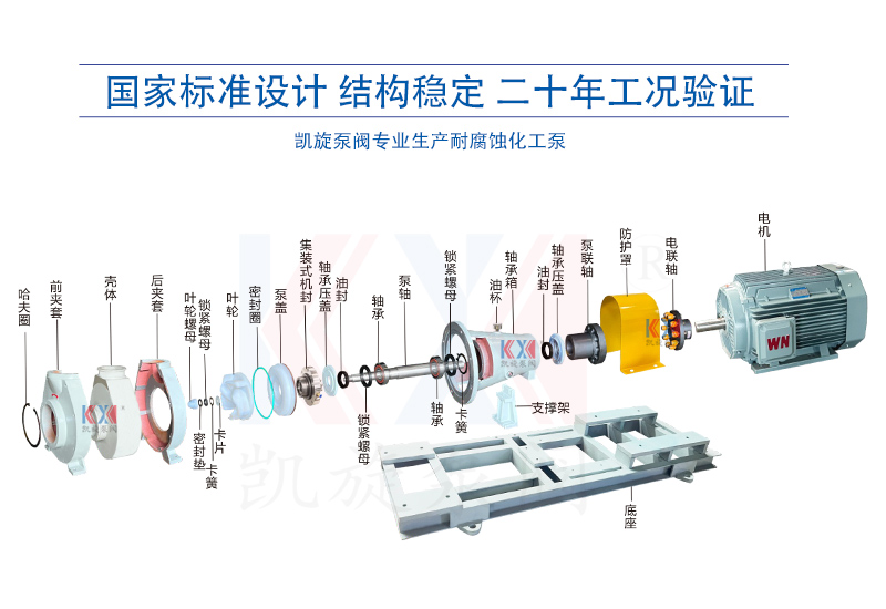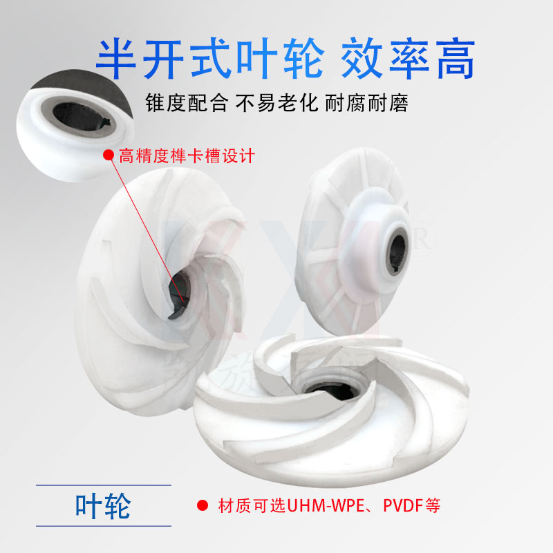 KJB型耐腐耐離心泵,又稱夾板泵,是參照國外夾板泵技術(shù),重新研發(fā)優(yōu)化而成,過流部件使用耐腐耐磨超高分子量聚乙烯、聚偏氟乙烯等材料制造。泵殼為分體式夾套,內(nèi)鑲可拆卸式泵體,整體結(jié)構(gòu)厚實,運行穩(wěn)定,能有效杜絕長期室外運行造成的塑料模壓件老化等現(xiàn)象。葉輪采用半開式結(jié)構(gòu),背葉板上均勻分布葉片,流道加寬介質(zhì)通過率高。密封使用耐腐耐顆粒集裝式雙端面機械密封,并可根據(jù)用戶需求配置相應(yīng)的沖洗方案。